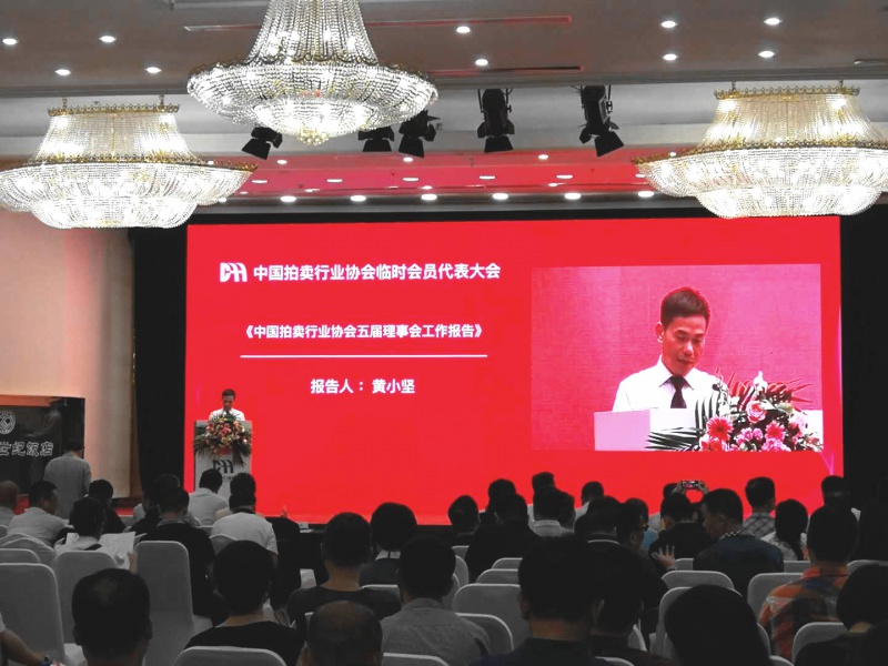 當天早晨召開的五屆六次理事會,審議并通過了“臨時會員代表大會議程及有關會議文件”的報告、《關于中國拍賣行業協會通過北京中拍網絡科技有限公司向中拍平臺網絡科技股份有限公司無形資產投資的說明》、《關于<拍賣從業人員考核管理辦法(審議稿)>的起草說明》、《關于中國拍賣行業協會會長候選人產生及選舉辦法的說明》等報告。因協會會長余平身體不適提出辭職,本次理事會也順利選舉協會原副會長黃小堅為協會新會長。